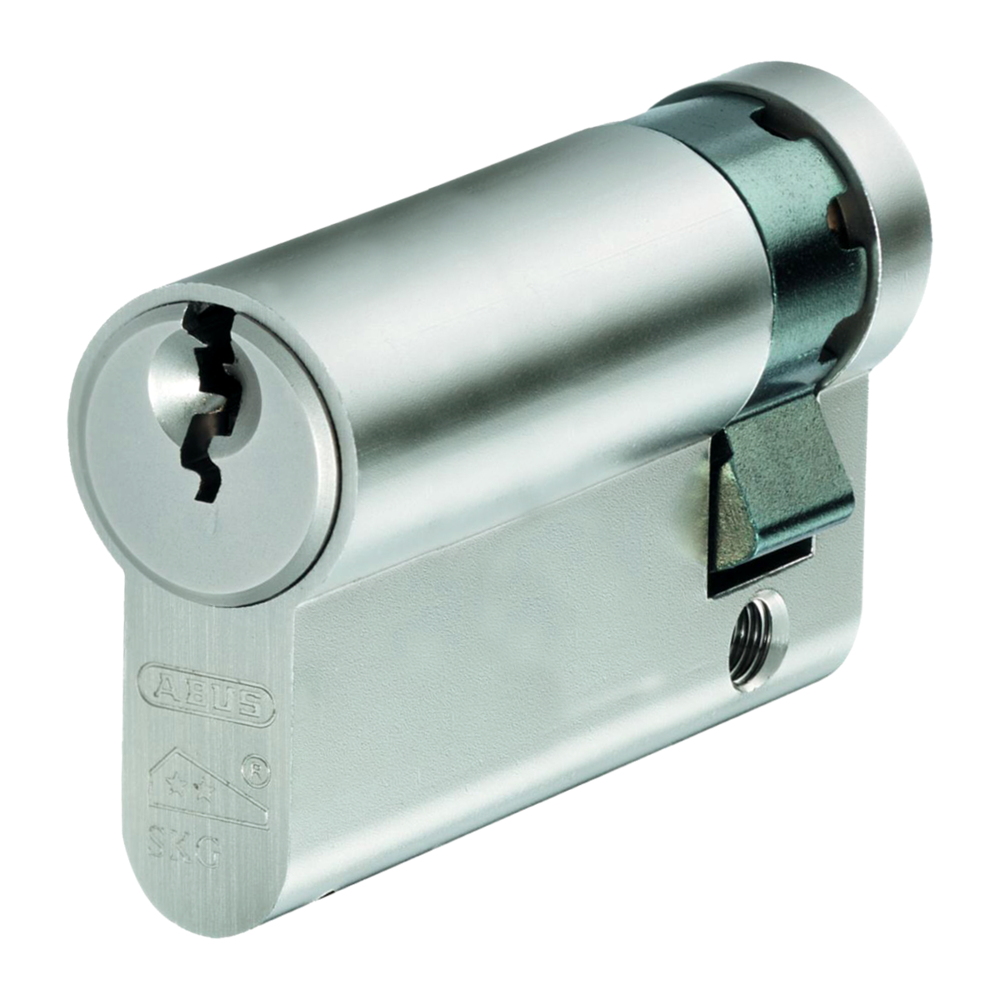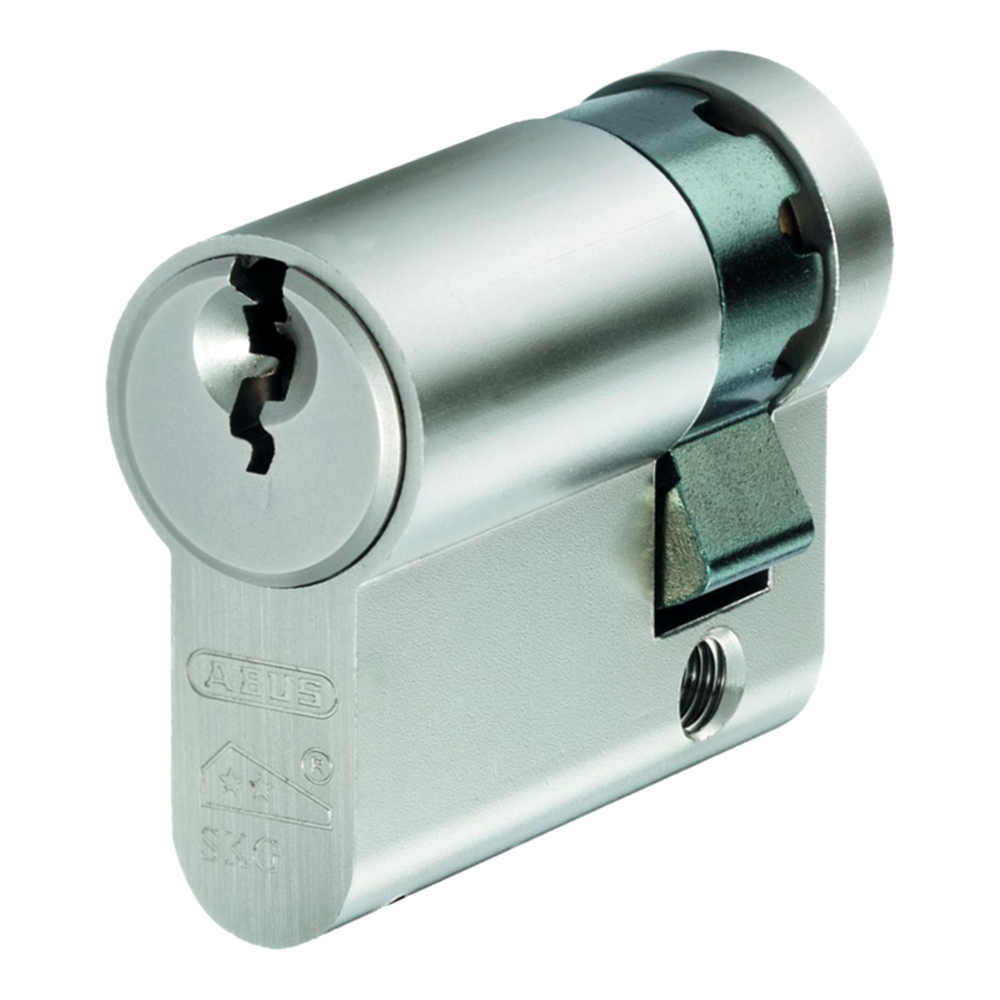 New ABUS E60 Series Euro Half NP Cylinder with 8 drill protection pins in every keyway plus emergency & convenience feature where outside key operates lock with internal key in place