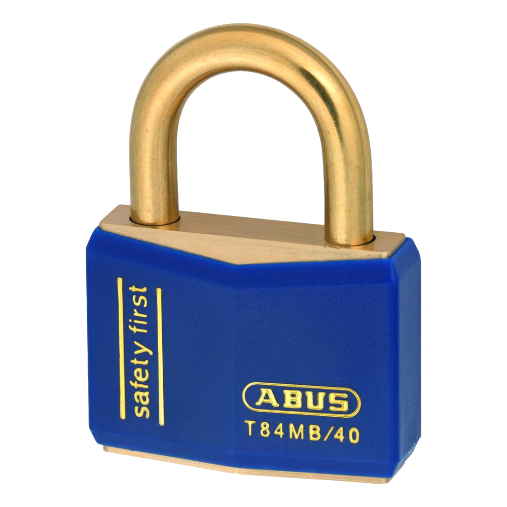 ABUS T84MB series brass open shackle padlock with vinyl case suitable for securing luggage, tool boxes & sports equipment; it is available in 6 colours, ideal for use with lock off hasps.
