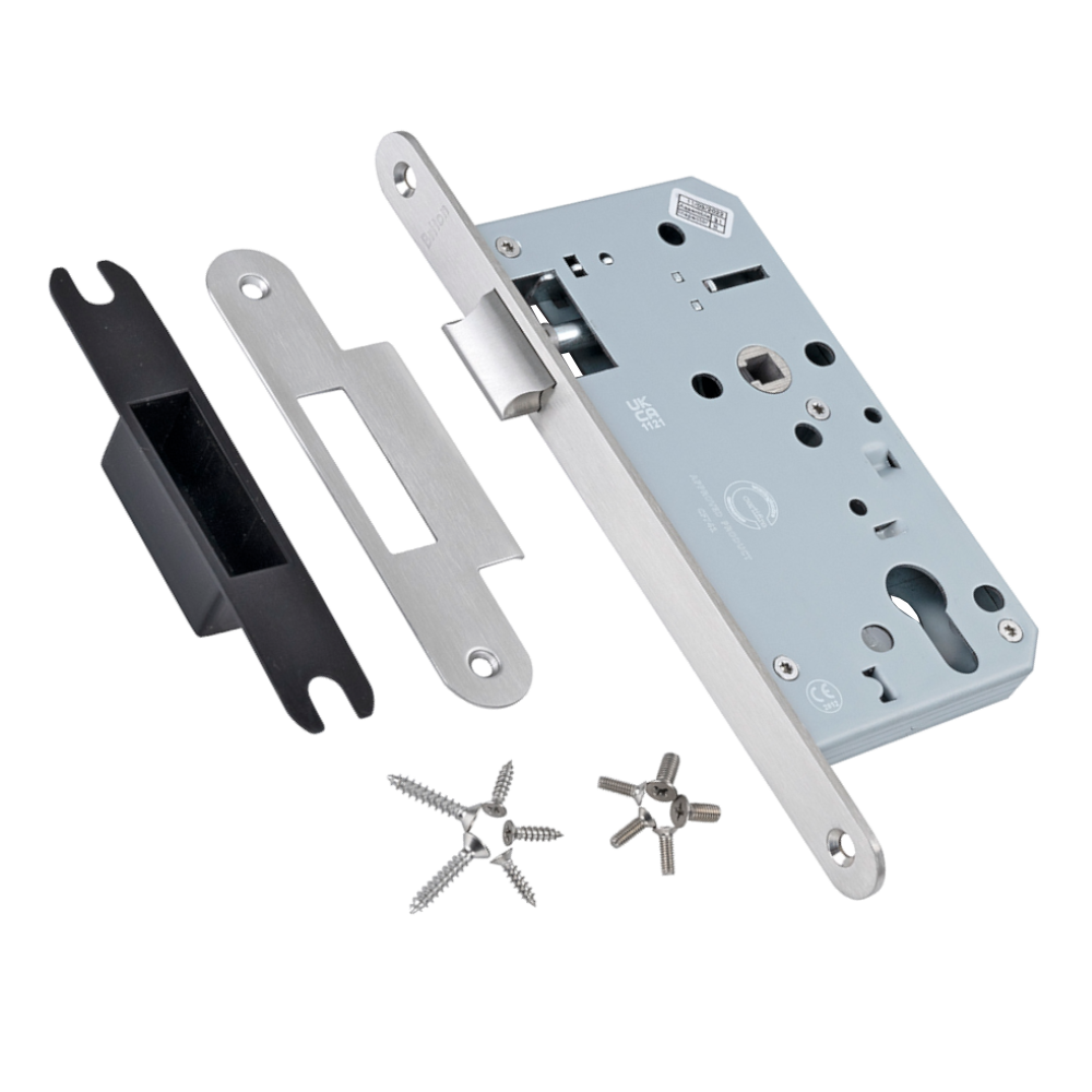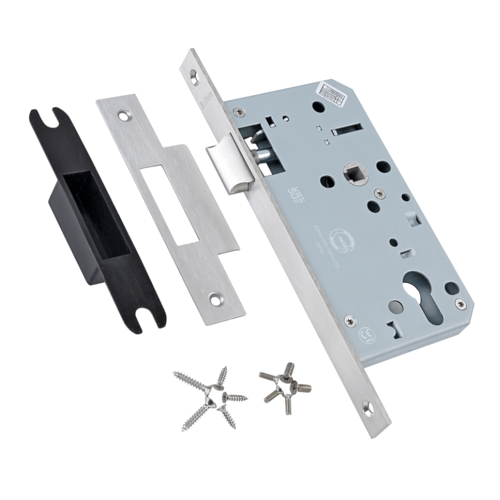 The Briton 5740 is a DIN standard latch lock for use on doors using lever furniture which are not required to be locked. It has a 60mm backset with 72mm centres and a profiled latch which is reversible. The 5740 latchlock has been fire tested to EN 1634-1 for use on fire doors up to 1hr timber / 4hr steel when used with the appropriate intumescent kit (Briton 5000.IP).
