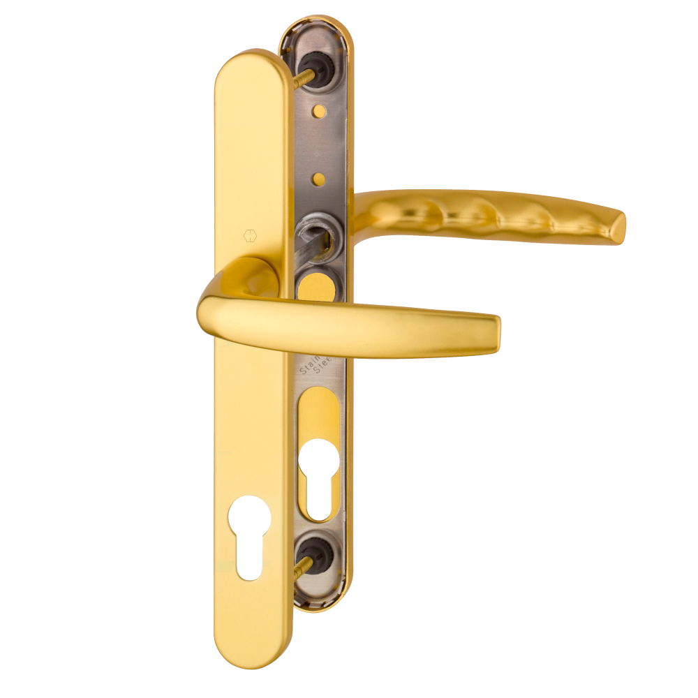 These Hoppe Atlanta lever/lever handles are to suit Roto. They are 2 hole fix, have a narrow backplate, an 8mm spindle and are suitable for UPVC multipoint locks with 92mm centres.