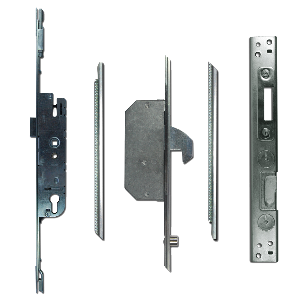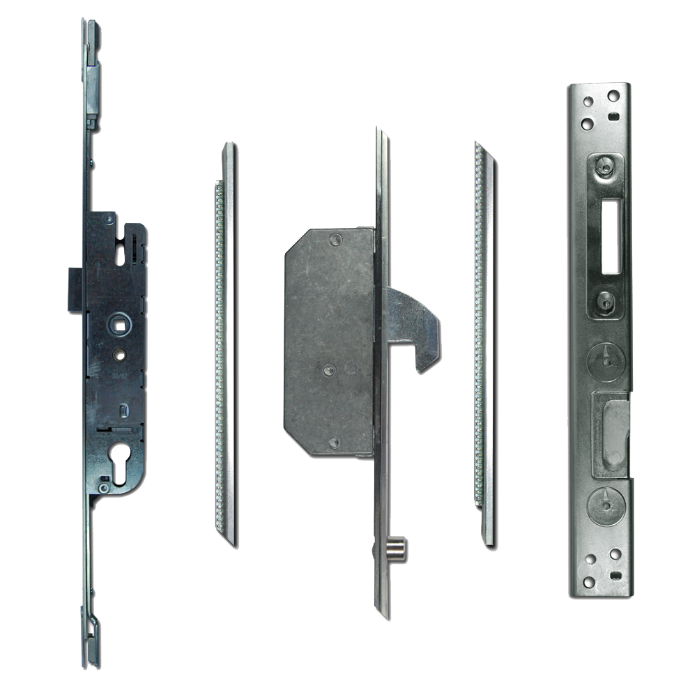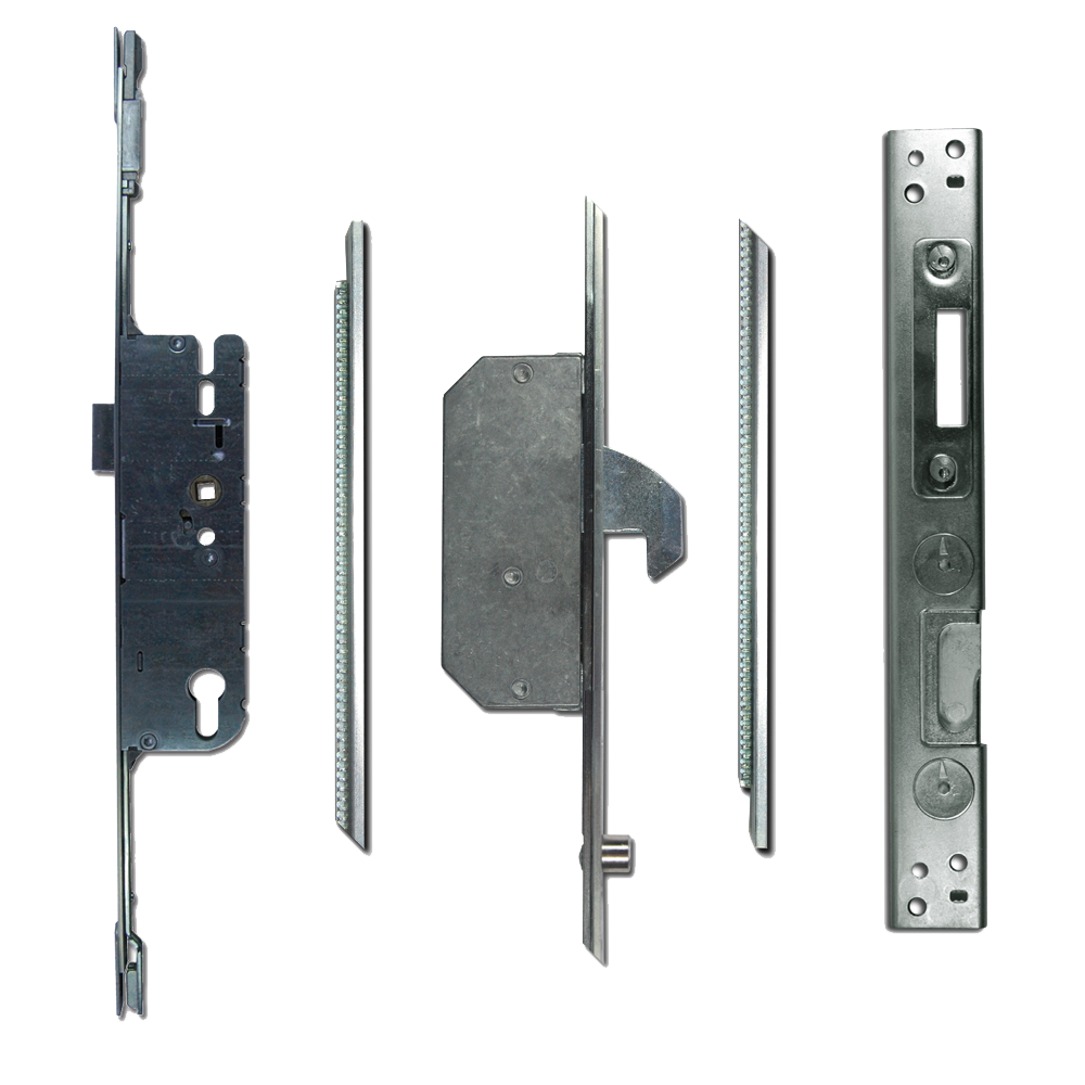 The Chameleon repair lock has a 16mm faceplate and is supplied in 3 parts so is easy to transport. It is very easy to assemble and the locking point extensions can be cropped therefore making them suitable for use on differing heights of door. It is supplied complete with keeps and the split spindle versions can be used as single spindle locks if used with a solid spindle.