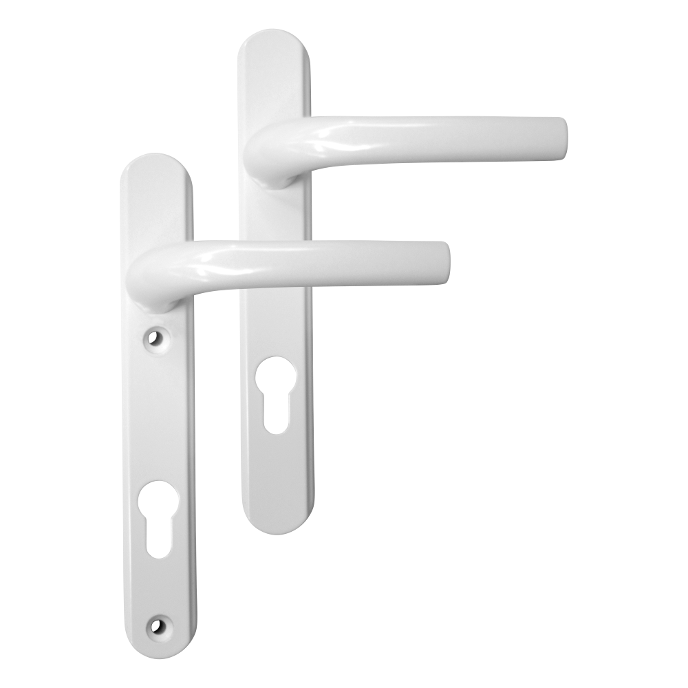 The Greenteq Alpha range of unsprung lever/lever UPVC handles with 92mm centres and a 220mm back plate is available in a range of stylish finishes.