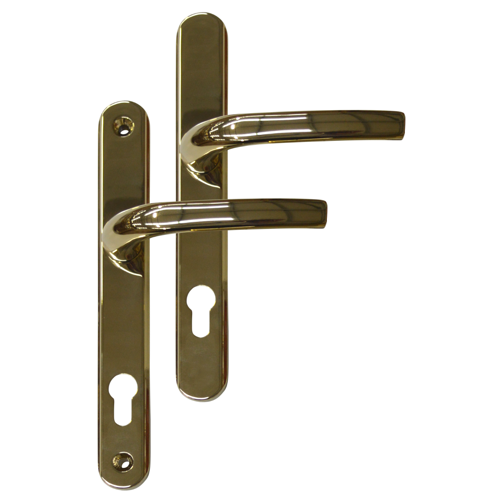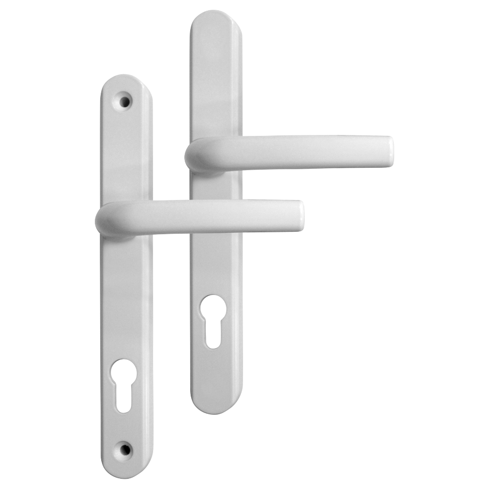 The Greenteq Alpha range of sprung lever/lever UPVC handles with 92mm centres and a 250mm back plate is available in a range of stylish finishes.