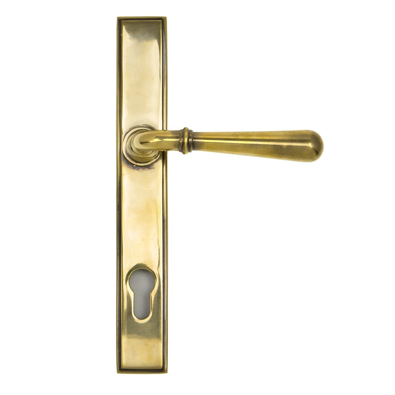 High quality, beautifully finished door handles with euro profile cylinder hole for use with euro cylinder multipoint (espag.) locks commonly found on UPVC and composite doors. It also has a spring incorporated into the handle which will always return it back to 90 degrees. The simple and slender design fits well into many different property types. Supplied in pairs complete with spindle and fixings.